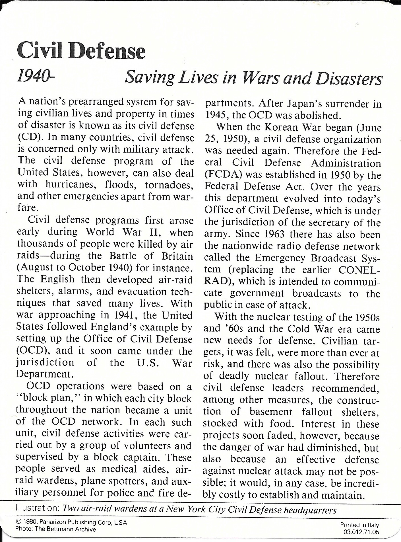 ABC for Civilians was published by the Office of Civil Defense in 1951. It was written by a committee of educators from Public and Parochial Schools for use in public schools.