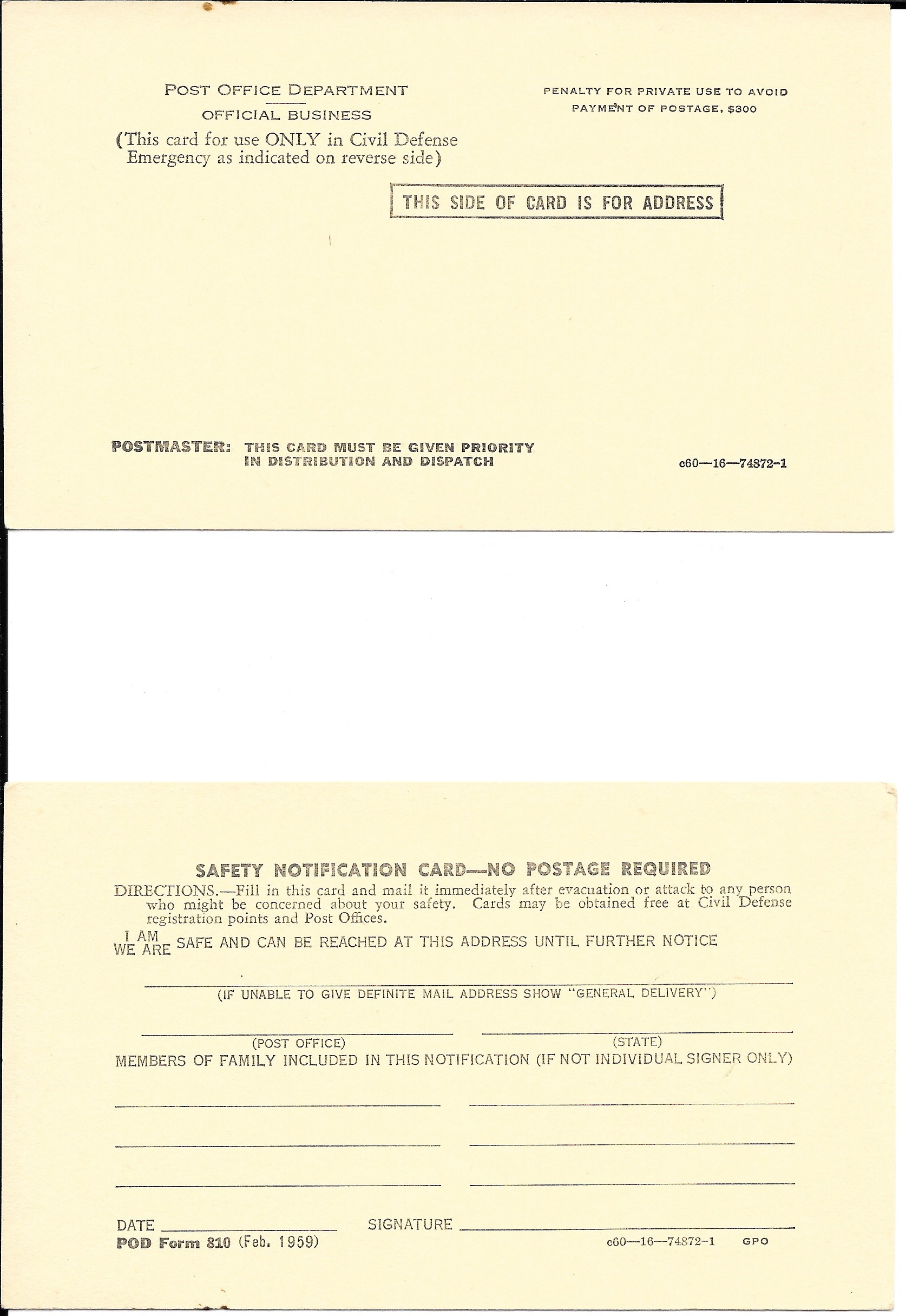 This card details an atomic blast as well as duties to perform while on base if one goes off. It is from 1950.