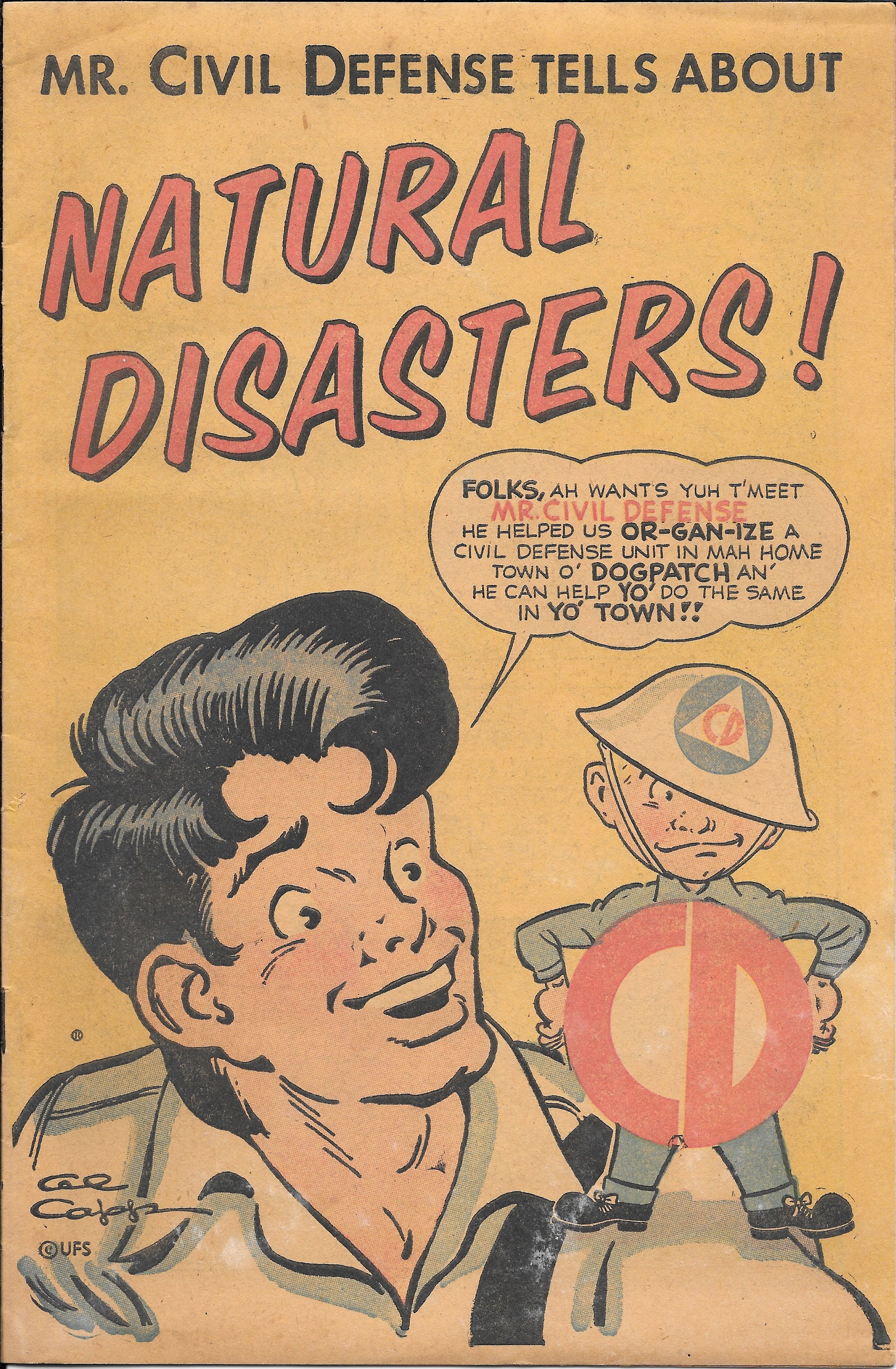 Mr. Civil Defense tells the reader how they can participate in the Civil Defense in their community, published in 1956.